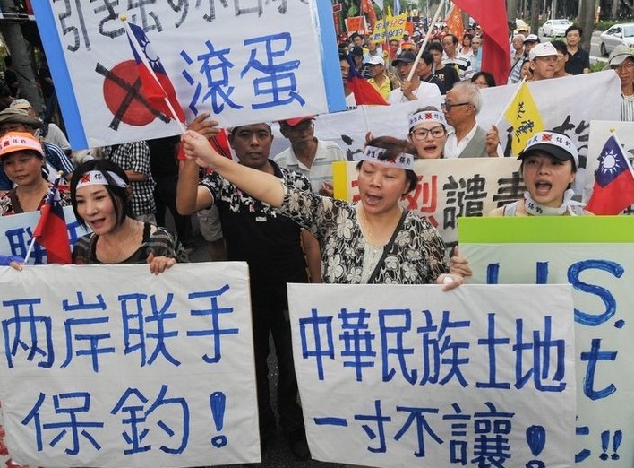 臺灣舉行了大規(guī)模的抗日游行示威活動,橫幅上多數(shù)打著“兩岸聯(lián)手,共同保釣”的字樣??谷盏那榫w在國內(nèi)掀起了一波又一波的熱潮。同時關(guān)于近期即將到來的國慶節(jié)和中秋節(jié)。原本一切車輛高度免費的字樣,高速收費站也打起了要對日系車收費的字樣。