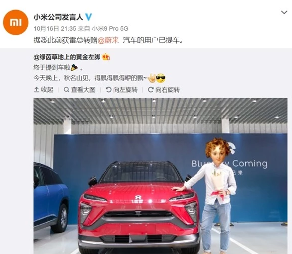 018年12月份,小米科技創(chuàng)始人兼CEO雷軍微博發(fā)聲:李斌(蔚來創(chuàng)始人)送的這輛ES6,雖然很想留著自己開,想了想,還是轉送給米粉吧!先幫李斌做個硬廣告:蔚來ES6,智能電動SUV,最快百公里加速4.7秒,最高續(xù)航510公里。